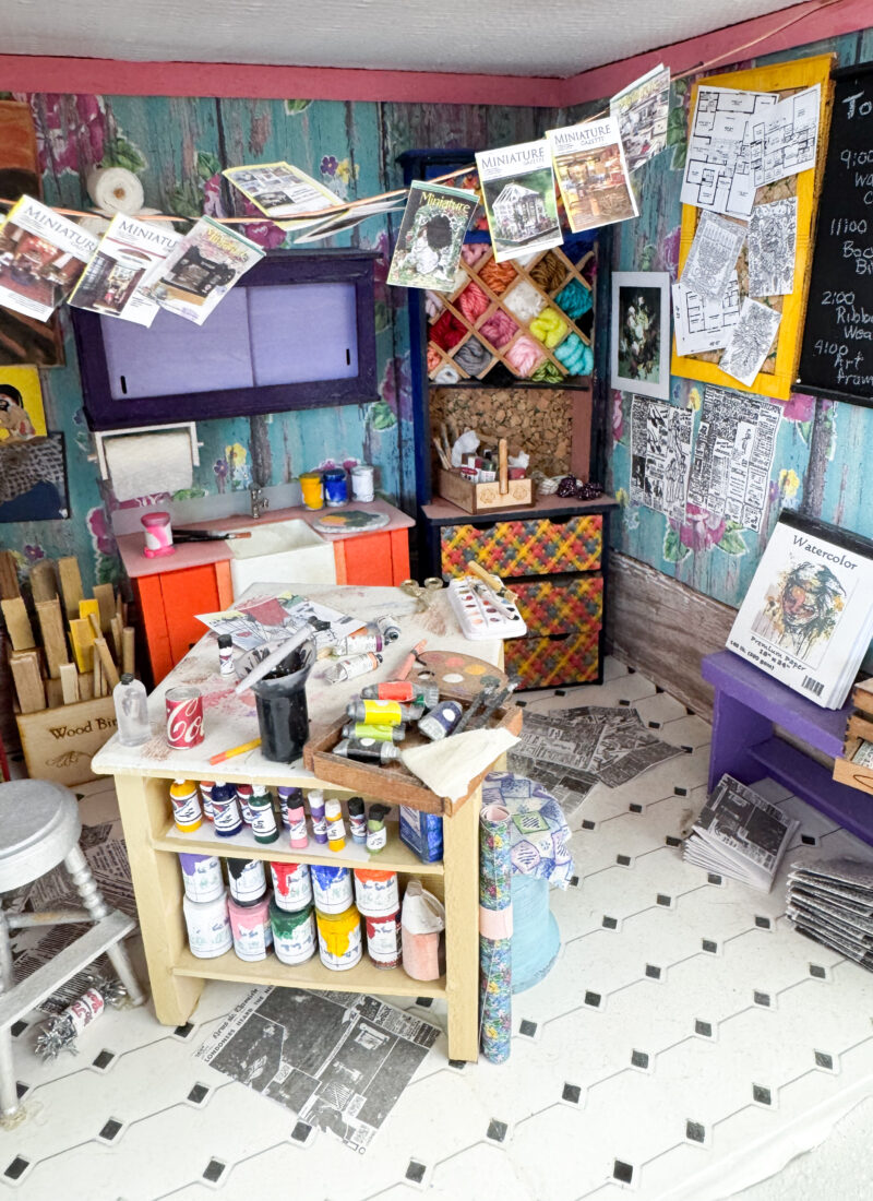 “Miniatures” refers to creations that are 1:12 scale (or smaller), also called “dollhouse scale.” The 1:12 scale means 1 inch scale size = 1 foot in actual size. For example, a 3-inch-tall miniature chair represents a 3-foot-tall chair.